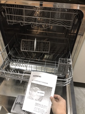 4、SIEMENS/西门子 SJ435S00JC洗碗机还不错的,洗碗机已收到,家里装修中还没装。有送洗涤液,先好评售后的:非常到位,一直认可这个的的清洁能力:比人洗的干净,有的餐具上有日积月累的污垢,比如说锅盖,洗了两次,特别特别干净了,跟新的一样,缝隙里的油泥都能洗掉外形外观:非常好看,不锈钢颜色,表面光亮,触摸屏,上档次噪音程度:可以接受,比洗衣机的声音小,不会造成噪音干扰洗涤容量:够用了物流速度:很快,及时,迅速洗碗机建议能买大的就不要买小的,真的,赶上商家搞活动的时候差不了多少钱,用水用电也差不了多少,小的用的不方便。
