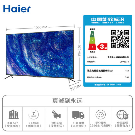 不吹不黑海尔LU70C71怎么样,多少人入手了后悔??这还不错的,海尔LU70C71 70英寸4K高清智慧超大屏网络智能家用液晶电视机官方-tmall.com天猫推荐,海尔LU70C71 70英寸4K高清智慧超大屏网络智能家用液晶电视机官方2+32G内存 远场语音 4K HDR 智慧家电互联海尔电视机真的不错,海尔这个品牌的产品性价比高,这款电视机是刚出不久的哈,我也是新入手不久,电视非常清楚,无闪光点,声音非常清晰,大屏幕看电影就非常好。海尔LU70C71评价使用: 海尔电视机最新活动详情: