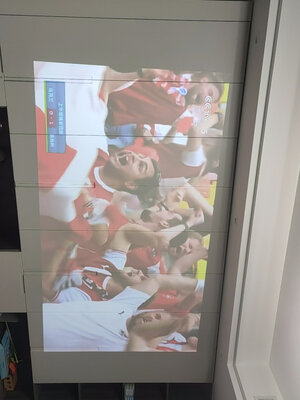 果然不负众望,收到货之后迫不及待开箱装机试一下。效果确实如网上评论一样非常不错。正好这段时间欧洲杯,看得非常过瘾。买的幕布还没有到,射在一面柜子上,也没有太大影响。前面几张照片是晚上关灯的效果,效果杠杠滴。后面四张照片是客厅开灯的效果,也不影响观看效果。声音开到一半大就很像电影院的效果了。推荐购买!