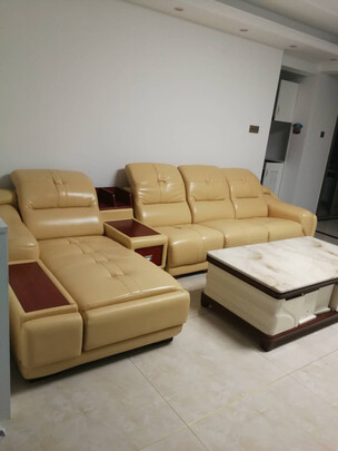 沙发坐着非常舒适,简约大气,材质很好,发货速度也非常的快。价廉物美,这个价买到这样的宝贝真的是值的家里装修搞完,今天做完清洁才拆开沙发拼起来,看着挺高大尚的,多功能边几很新颖,坐起来软软的,沙发垫是三防布,周边、侧边都是皮的,设计挺不错的。价格也实惠。家住15楼,感谢快递师傅安装送货到家。质量不错,样子也比较大气,很符合装修风格,安装师傅也给力的东西还是一如既往的可以,很喜欢非常赞的一次购物,下次还会来的宝贝很行可以,下次还来H