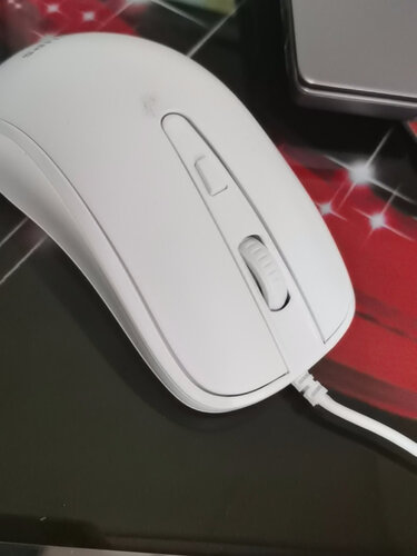 目前用着还不错,挺静音的,第一次用白色鼠标,白色会透出红色的光,还挺好看的。希望能够用得长久!