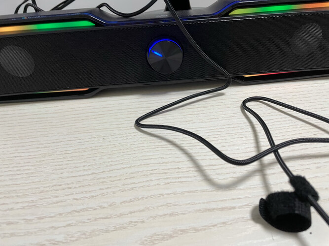 先来个总结整体感觉还不错。 外形很炫酷,倒三角配上圆形,小仰角设计,挺和谐的。 灯光方面:灯光会变化,两只的颜色变化不一样,两只扬声器灯光是有稍微互动的。 70*80*120的小体量设计,小而精致,不占空间。 夜间打游戏配上灯光,但又不想占用空间,可以考虑下。