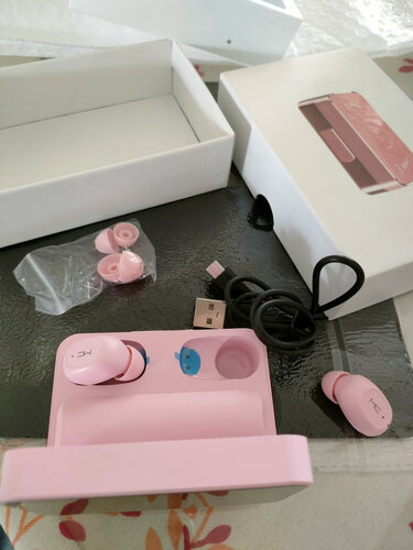 做工质感:磨砂膏的耳盒 音质音效:音质非常好,很清晰 舒适度:戴着很舒服 其他特色:耳机盒上面是一个镜面,可以看看自己的妆容,要凑近看,凑远了你的脸就变形了像极了我家的镜子