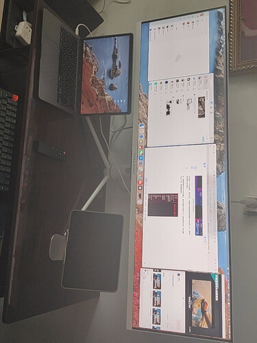 刚开始拿到货我还感觉有屏幕有些太大了,心里嘀咕如果桌面实在放不下就不要了。但当真正连接到笔记本电脑,显示出画面的那一刻,我被这屏幕的显示效果震撼了!那种被屏幕环绕包围的感觉,体验过之后实在是太爽了;再也回不到笔记本之前的那种小屏幕了!