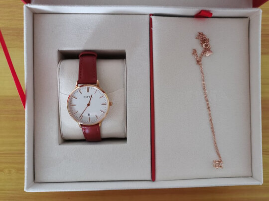 老妈同事帮她买的,老妈的要求就是表盘要大,比较满意,红色也很好看,还送项链,包装也很精美。