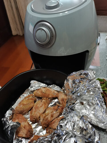 一直种草了很久,但是没有买这次的颜值蛮高很清爽,适合夏天容量也比较大第一次烤鸡翅,没用锡纸效果好一些好,第二次使用锡纸,但是没有翻面。就差了