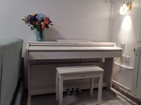琴收到了,实物颜值比图片的还好看,很符合我家的场景,又不占地方。在琴上摆点物件超级好看,音质也很棒,值了!放家里看起来就很漂亮。质量对得起这个大品牌