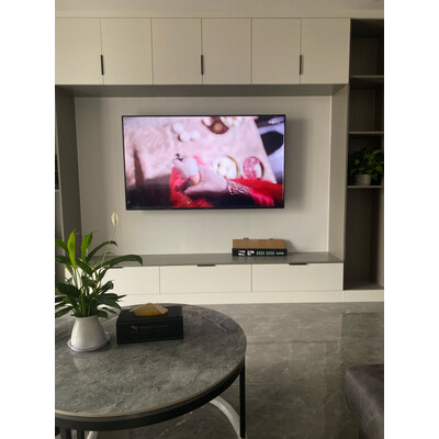 2021-09-17 00:00:01很靓,大小尺寸刚刚好,跟影视墙挺配的,画面清晰,音响效果非常棒,京东值得信赖!安装师傅服务良好