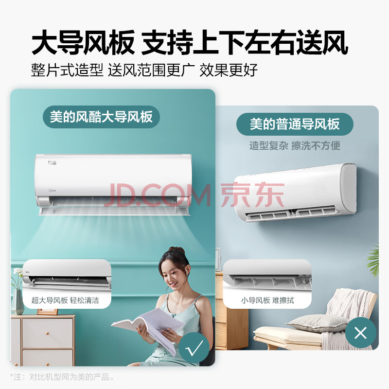 美的(Midea) 新一级 风酷 大1.5匹 智能家电 变频冷暖壁挂式空调挂机防直吹KFR-35GW/N8XHC1 新产品,买了四台,出风足够大