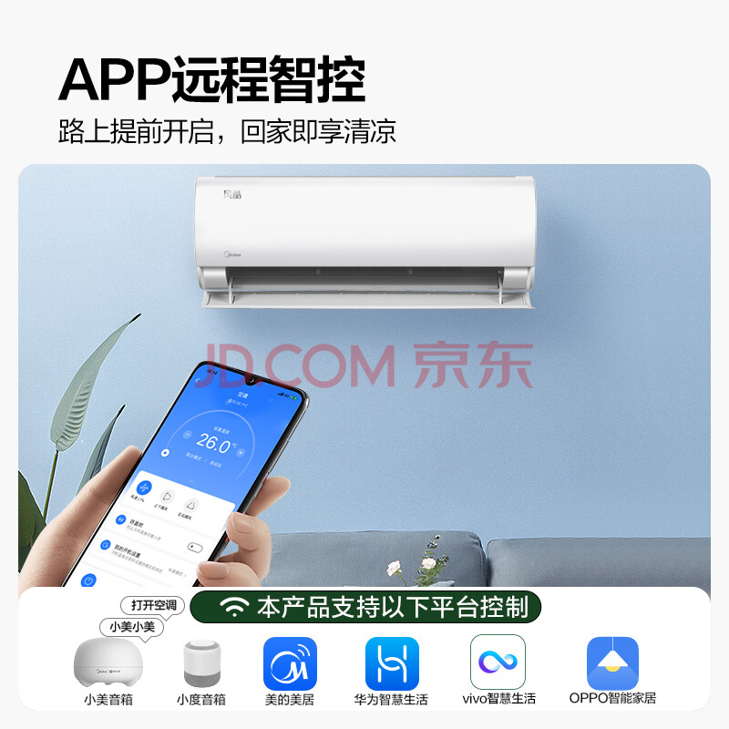 美的风酷空调制冷强劲,压制了秋老虎,终于能睡个好觉了,外形外观:很漂亮的白色,很有质感,冷暖效果:制冷很快,静音效果:变频的声音很静,产品特色:可以支持手机控制,非常方便,准备回家可以在手机上提前开好空调