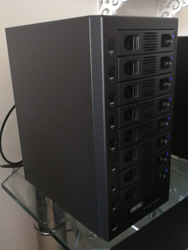 之机箱里一直有很多机械盘放学习资料,有十多个,不仅挑机箱,挑到理线巨麻烦,还盖不上侧板。而且感觉这么多硬盘通电也会对硬盘不好。这玩意挺贵的,能买10t的硬盘了。但也算完美解决了我的需求