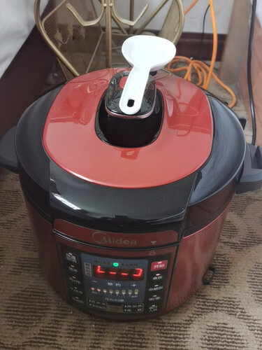 到货非常快,外观很漂亮,操作开始不熟悉,联系客服,客服工作人员特别耐心讲解,指导操作。先后:蒸了米饭特别好吃,今天又炖了鸡小肘,味道特别好,告诉我身边的朋友都买这款美的电压力锅。给五星。