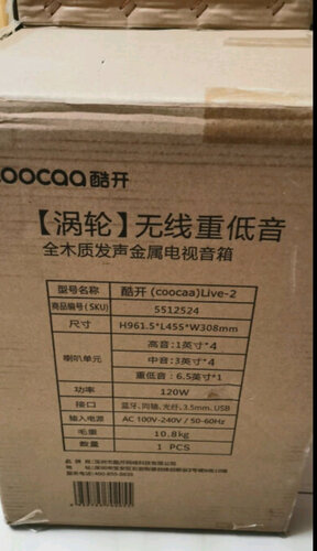 商品名称:酷开Live-3 商品编号:100000417713 商品毛重:12.0kg 商品产地:中国大陆 声道:5.1声道 搭配电视尺寸:55英寸及以上 类型:后置环绕套装 连接方式:光纤,蓝牙,AUX,同轴,USB 音响效果:3D环绕,虚拟环绕声,无线低音炮套装