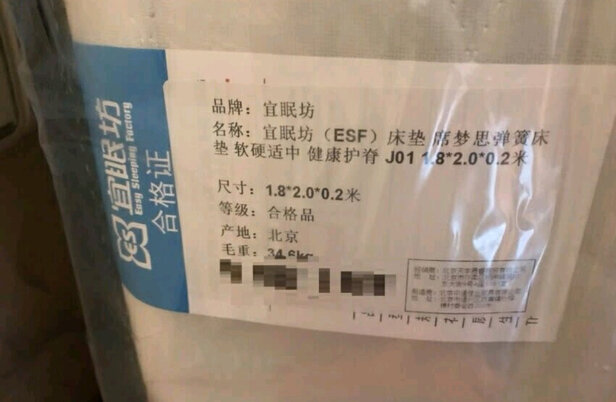 第一次买宜眠坊这个品牌,包装很好,早上下了一点小雨,快递员的小货车没有雨蓬,外面包装湿了一条,但是由于床垫有三层包装,里面没有影响!床垫做工很好,质量很棒,软硬适中,舒适度很好,价格也很实惠。睡一段时间再来评价睡感
