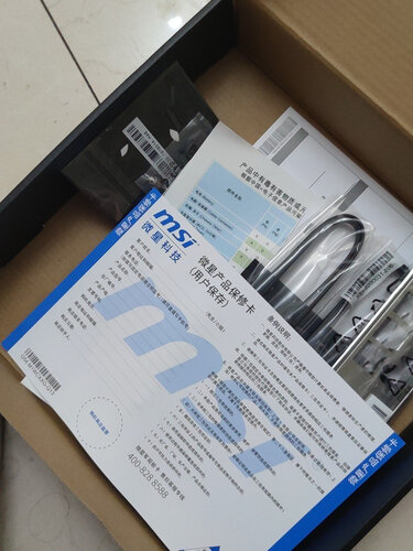 微星Z490S01 用户评价:原来丐板的盒子这么简陋,第一次买微星主板,买来和10600kf一起使用。主板没有任何rgb,早知道加点钱买点有光的搭配一下显卡