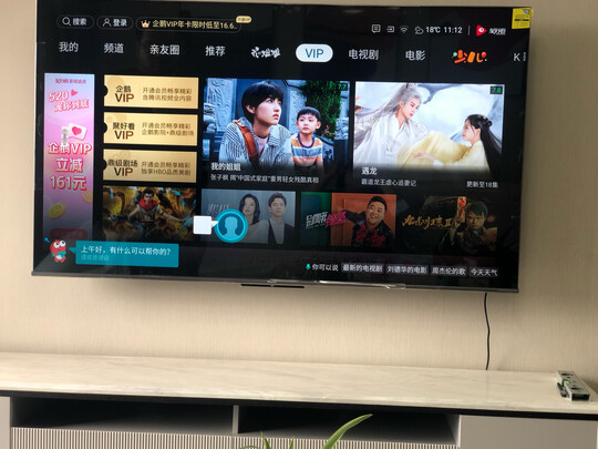 电视大看着非常舒服,音质也好,没有广告,手机可以投屏,看剧方便,纠结了很长时间选75寸的还是65的,现在觉得选择没错,送货师傅直接装了,不需要打客服预约安装,很方便。