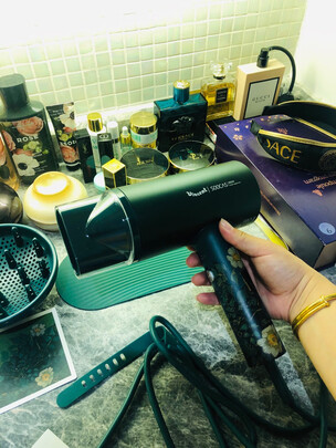 nice ! 很漂亮的墨绿色,拿在手里重量很趁手,风力大,吹完头发亮泽顺滑,绝对的黑科技,比普通的吹风机好用太多了,给孩子用来吹头发也很放心