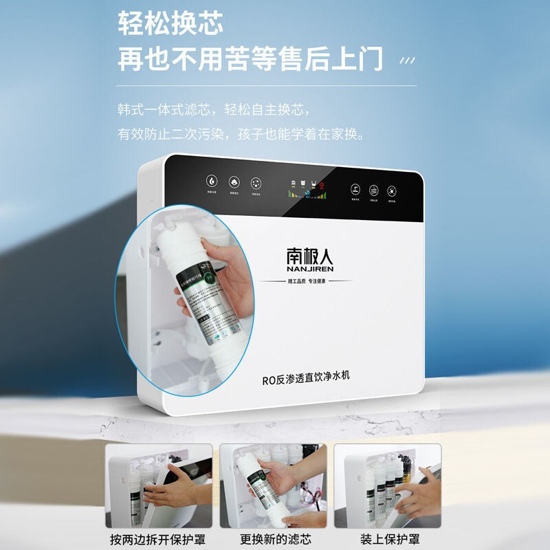 南极人净水器货已收到。物流很快!资询客服发了个安装视频,安装简单,出水很快!的质量很好!选择了送个滤芯的套装,能用好长时间。水质和矿泉水口感一样,真心喜欢,省去烧水步骤,简直太方便了出水速度:方便快捷安装也很快静音效果:**静确实很安静物流速度:真快比预计的更快其他特色:好看有设计感净水器好用方便,水质口感好,睇了好几款,都是选,选就买对了