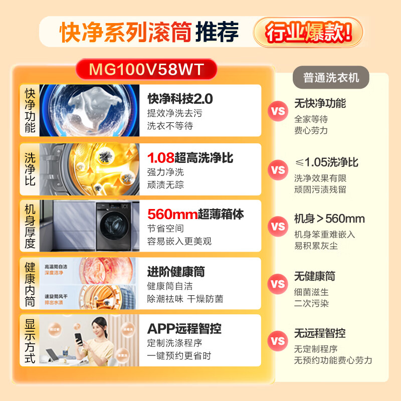 美的洗衣机外形外观:小巧不占空间,比其他家的要小一点的洗净效果:还算比较干净,速度也快容量大小:适合洗一两个人日常的衣服和床单被套啥的洗衣机声音不是很大,智能投放很省心操作起来也很方便?安装师傅也很有耐心,购物很愉快颜值挺高的,安装也挺快的,当天送达,下午就安好了,非常满意,以后有需要再来购买,五分好评,安装很顺利,下次继续购买洗衣机已用两个月了来评价,洗衣机很好用,雨天选择烘干,洗好就可以穿,超级方便,外观漂亮,赞