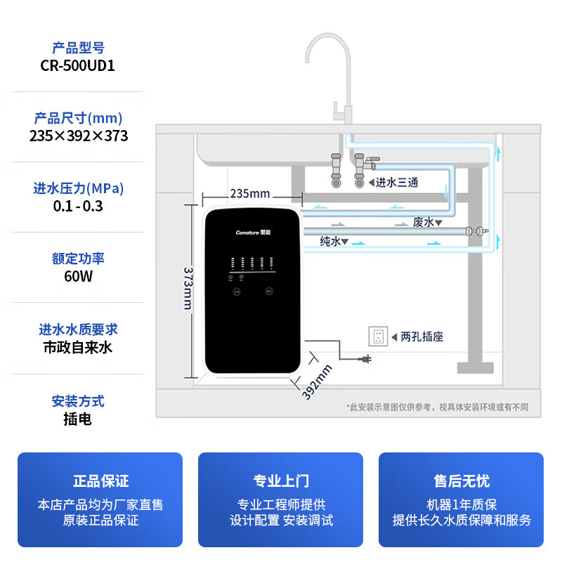 宝贝收到了,非常满意,自己动手安装半小时搞定,很方便,我还买了一卷生料带,结果用不上,厂里都配套好的安装完成不错,又帮朋友买的,快成义务宣传员了,又买了一个备用滤芯。晚上做饭已经用上了。老公特别喜欢它的三档调节模式,加压模式简直不要太好用,我喜欢过滤档位的,感觉水质更好了非常不错的一款水机,快递很给力,安装师傅隔天就来安装好了。水很好喝。