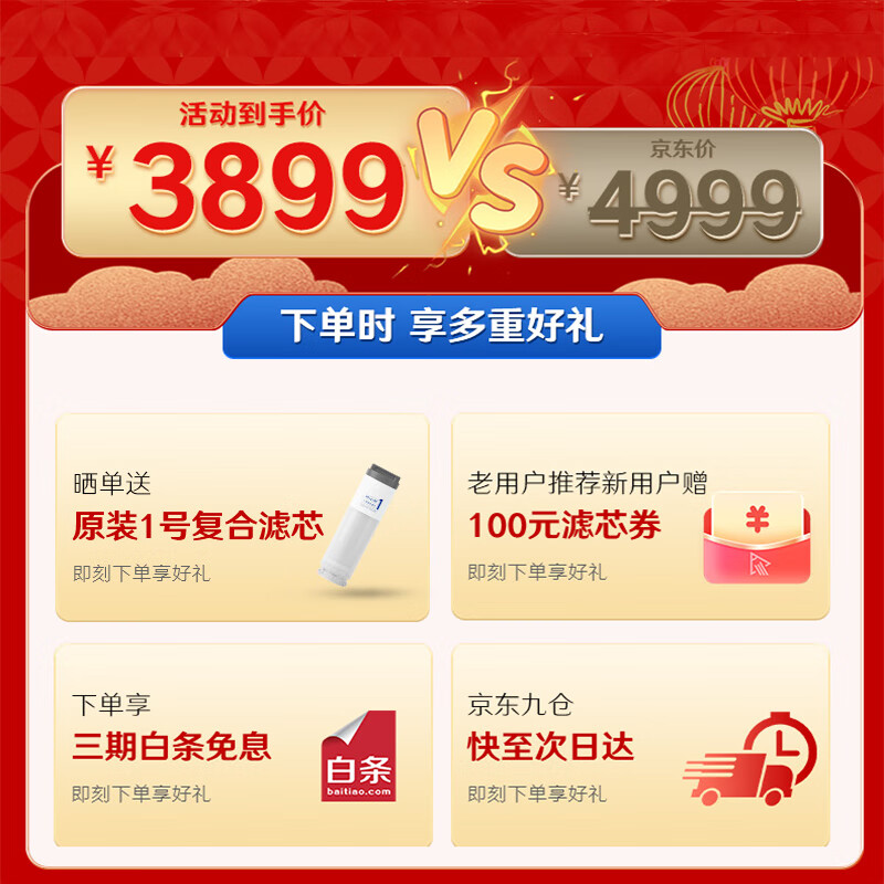 关注了好久,双十一终于下手,今天安装好,小试一下,真的非常不错,蓝色的提示灯设计的非常到位,期待长期使用的效果!安装师傅非常诚恳,很详细的帮我安装,介绍。产品很好,很好用。买回来自己安装,很简单很快就弄好了,出水量大,很好用,过滤效果很好。送了检测余氯的试剂,测试了一下果然没有残留。安装简单,这款厨卫两用挺不错的,以后就安心用水了,试用过,应该正品