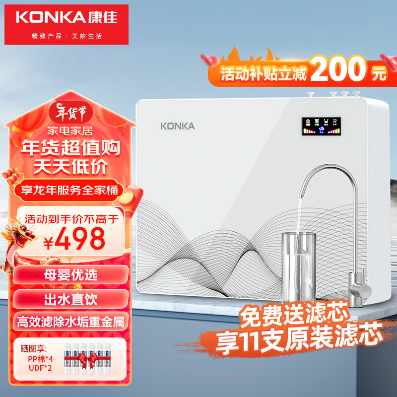 康佳净水器净水器真的很好用,孕妈妈总担心水质问题,用滤水壶有时候又慢,老公就下单了这个,货比三家,真的没白比!物流快,客服也很好有问必答。东西不错,已安装好,可以喝到放的的水啦!收货就联系了安装。外形美观,做工精良,包装严谨,出水快,过滤后没有异味和水垢了,确实不错,品牌值得信赖。出水速度:还不错静音效果:很好外形设计:美观大方物流速度:快