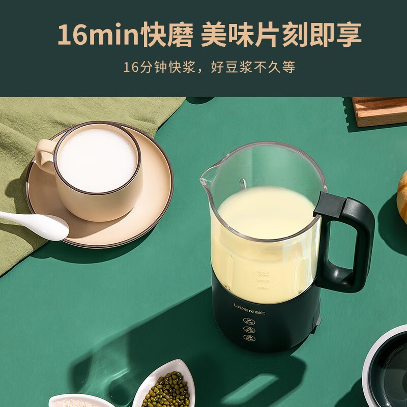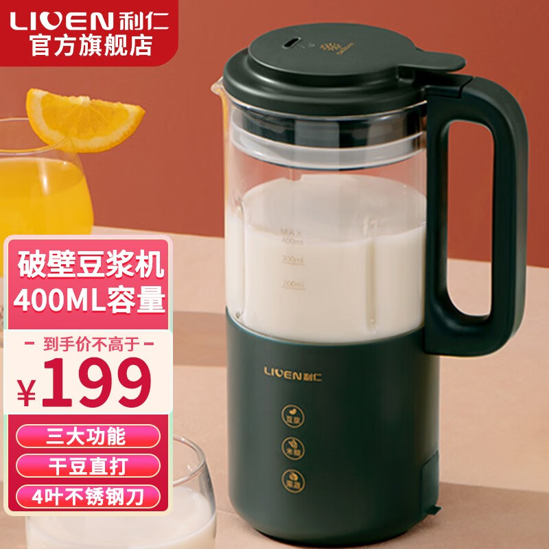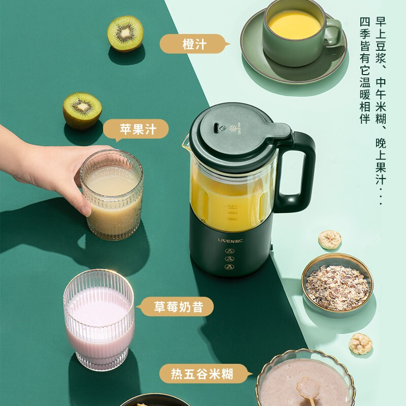 利仁破壁机红豆浆黄黄豆浆,玉米汁,胡萝卜汁都试过了,声音能接受,还松了一个烤箱,有了破壁机每天早上换着花样做早餐很好用,性能好,炸的豆浆很细,很好喝,比以前买的别牌子好多了,声音小。外观外形:好预约定时:好声音大小:噪音小打磨口感:打磨口感:非常细腻,好产品功能:非常适合一到个人动力大小:正好买完很快就收到了,外观时尚好清洗,打出来的东西非常细腻,噪音也不大可以接受。
