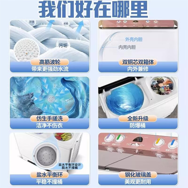 活动优惠,给力。外形美观漂亮,洗衣机可以一次性被子外套衣服一起洗,大容量,值得推荐购买。就是水要多一些才好盖住衣服来洗。洗衣机一到家就迫不及待的安装使用了,这下解放双水了,清洗能力强,很好,里面空间也大买来专门用来洗小宝宝衣物的,大小正合适,清洁很干净。安装很方便,自己动手接个上下水就行,也可以叫师傅免费上门安装。外形外观:不错洗净效果:尚未使用用后追加评论除菌效果:还没使用用后追加评论容量大小:合适
