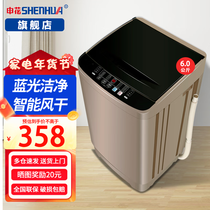 申花洗衣机打开以后 外观非常漂亮 大小合适 安装也非常简单 洗涤效果很好 运转很快 而且没么噪音 功能齐全 价格实惠 性价比很高 值得购买美观大气 功能齐全体积大小也正好,容量很大,能洗十公斤的衣服清洁效果好。声音不大很好用的小洗衣机 不占地方 用来洗内衣和毛巾 看中了高温煮洗的功能 能够不定时的消消毒 使用也非常方便 真的是解放双手了!洗衣机颜值很高,原本怕这个有点装不下,没想到比旧的洗衣机还要小巧,是洗烘一体机,带光动银。