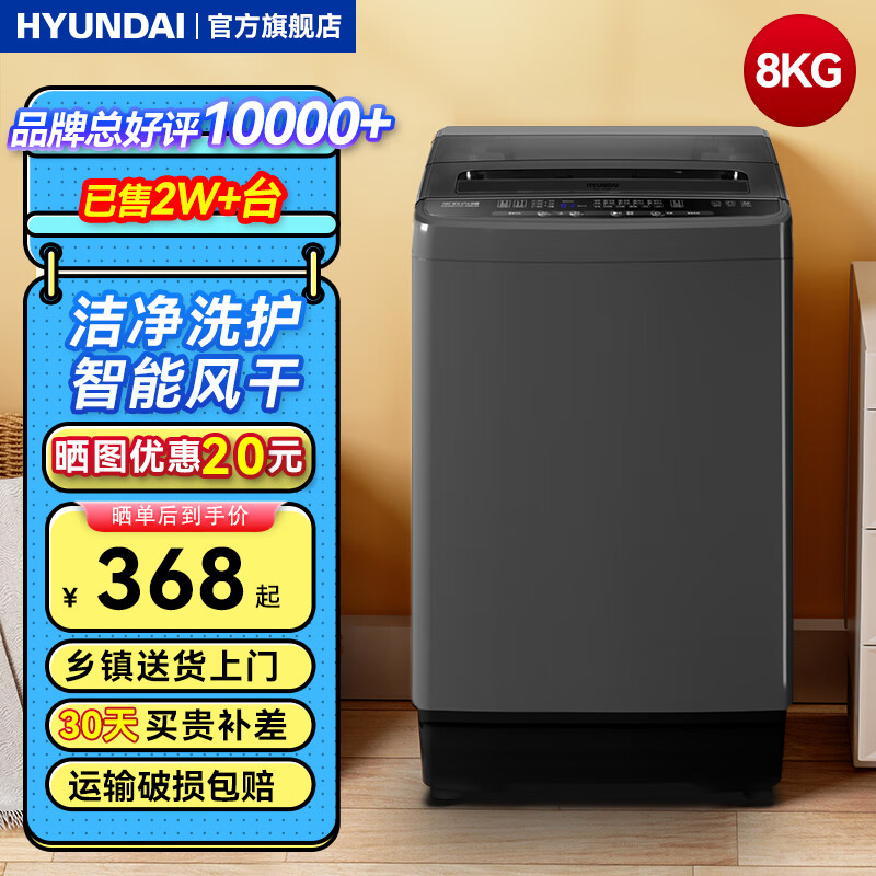 现代洗衣机物流很给力,配送很好,帮忙送上楼安装师傅也很好,帮我安装好,并且教会使用,讲解了注意事项产品外观很好看,功能很强大给妈妈买的,农村只能用这种半自动洗衣机,妈妈说特别好用,洗得干净,隔壁阿姨业让帮买一台。洗衣机衣服洗的很干净,省时省电,功能齐全,自带的烘干功能让衣服再也不是潮潮的,随洗随穿,外观美观,商家讲解的很仔细,非常喜欢好用,质量很好。外观设计漂亮,使用方便,非常满意的一次购物,建议大家购买,好评好评好评。