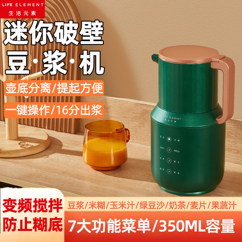 生活元素破壁机宝贝收到了,已经用了一次了,打出来的豆浆非常细腻,家里的厨房小电器基本都是买的的,质量非常好又非常耐用简单方便使用,快递挺快的,使用过后才评价的,打的豆浆很细腻!特别喜欢,颜值超高,杯体不重,清洁很容易,到货就打个豆浆试用,声音比想象小好多的,卧室根本听不见,操作也是很简单的!不错,很好用,自从买来以后,一般每天两次,早上做早餐,晚上做果汁。