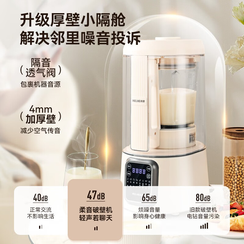 美菱破壁机容量大小刚刚好,今天打了五谷豆浆,特别细腻绵滑无渣,清洗也方便,小巧不占地儿是我想要的,声音大小也可以接受换了两次了,一个高温清洗就不能正常使用,这#,还让不让人用了,买来,时间全用在退换货了。声音不是很大,不管是奶昔、米糊、豆浆都打的很细腻,我也试了鱼汤,骨头基本打碎完了,非常好的一款破壁机宝贝性价比很高,颜值杠杠滴,对于新手来说,很好用,家里很多电器都是,是的忠实粉丝!