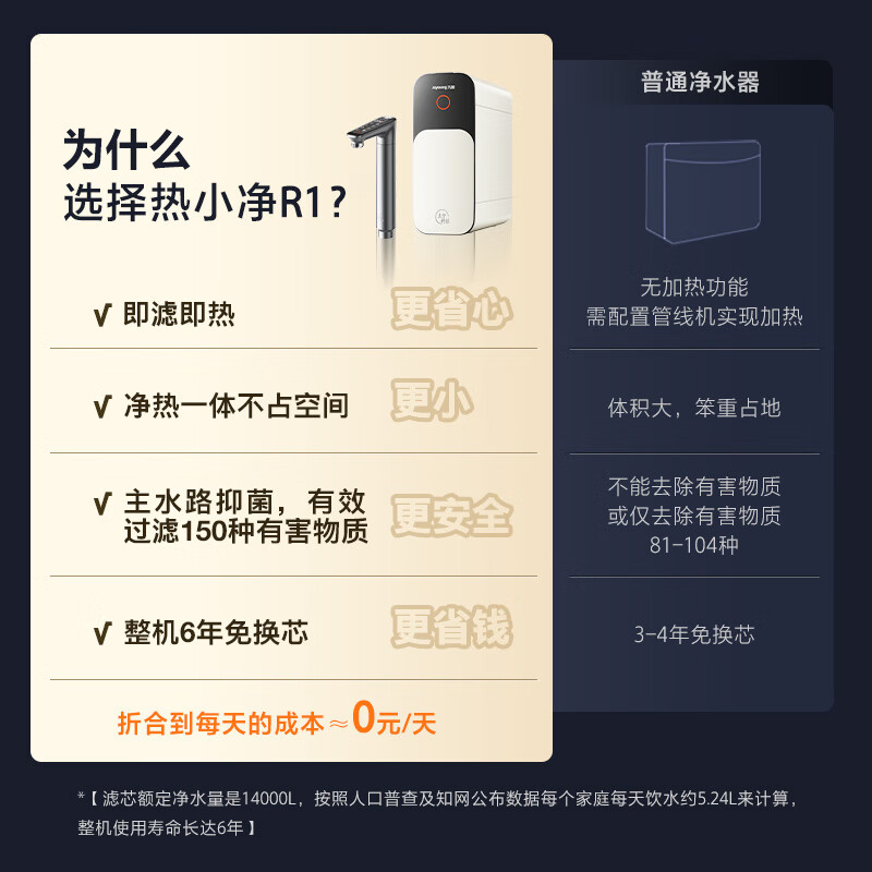 九阳净水器机器小巧,不占地方,管线机接出来的水和*块的净水器一样,物有所值,买的带储水罐的,万一哪天停水,一样有水喝。比实体店同品牌的便宜不少,希望质量也能有保证吧,性价比不错。东西确实如描述所说,效果真实!因为家里是地下水特意接了两杯,分别为净化和未净化,肉眼可观水质的变化!非常满意,效果很好,做工精细,安装简单,价格实惠,物流也很快