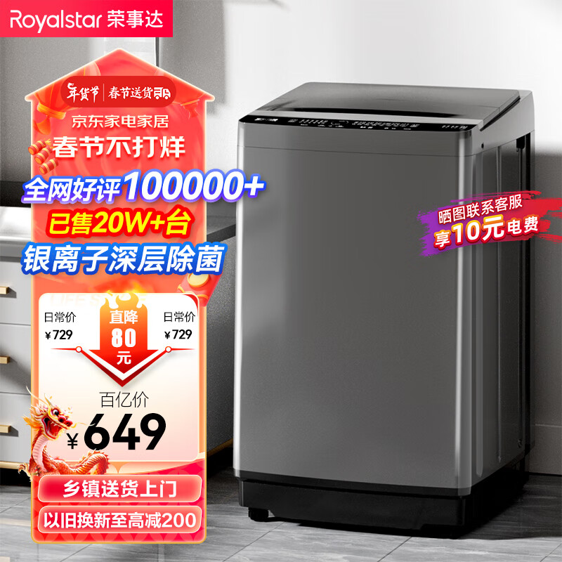 荣事达洗衣机外形外观:挺好看的容量大小:外观看着不大 里面确实比之前的洗衣机大很多给家里买的 安装也方便 自己也可以安装。使用一段时间再来追评价格还行,速度也挺快的,按时送到,客服也挺好,问了问题都回答啦,今天安装好了,家里人说挺好滴外形外观:小巧精致,适合女孩子洗净效果:干净快速,节约用水用电,噪音小。除菌效果:洗完较干净容量大小:适合自己的需求洗衣机早已收到,用了一段时间才来评价,各项功能都很好用,快递也很给力,非常满意。