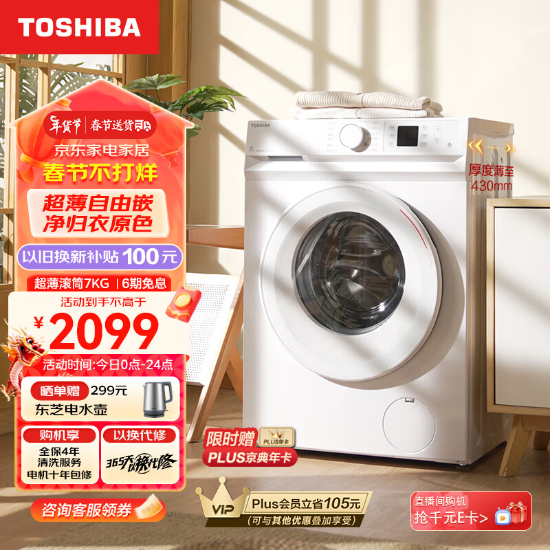 东芝洗衣机外观非常漂亮,特意买的薄款,比想象中的还用小巧,适合地方不大的家庭。开机后进行了自洗,声音还可以。筒里空间还是挺大的。整体非常不错货已收到,物流很快,自己安装上试洗了一下衣服,声音很静操作简单。很满意的一次网购。洗衣机拆开很大,质量看着很不错,装的师傅沟通也很愉快,喜欢这个洗衣机,还送了一个小的折叠洗衣机,可以洗内裤或者袜子外形外观:简单时尚洗净效果:洗的很干净除菌效果:很完美容量大小:一家的衣服多可以洗