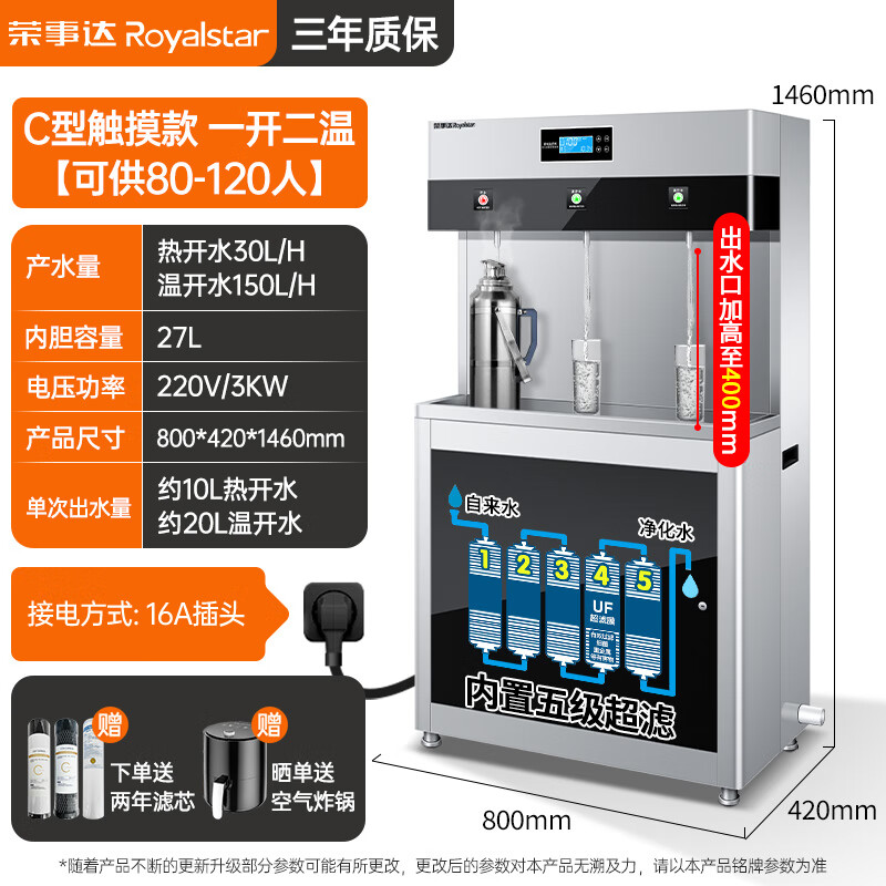 热心网友2024-03-12颜值高,科技感强,小巧、不占地方,对有孩子的家庭来说:水源很重要,泡奶粉很方便,温度、出水量都可以调,值得推荐!饮水机很大方实用了一下,没有任何的瑕疵,质量也很好,确实很不错,必须好评。买的净水器已经两年了,净水效果很棒,平常喝水都用它,现在到了该更换净水滤芯时候了,趁有活动,果断下手,京东给力!关注这一款净水器很久了 终于下手了 很不错 精华完左右 比我买的桶装水还好