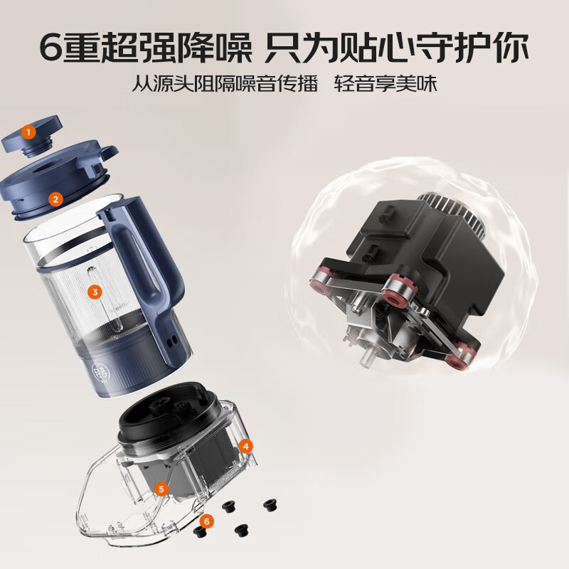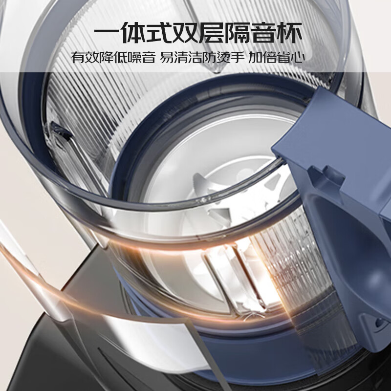 这个小破壁机真的很不错,声音也不是很大那种,比家里的大的要安静很多,管着厨房门不会被吵醒的那个音量,就可以接受的噪音罩很管用,声音确实小了很多,玻璃得杯体有点重但是很好清洁,打了绿豆黄豆很好喝货收到了,物流很快,产品看上去很精致,品牌值得信赖。两个 杯子冷热两用,方便,容量也很大,足够用了。破壁真的没声音,不像以前用的那个,吵得要死!有了这个,可以给宝宝做米糊、果汁吃了。
