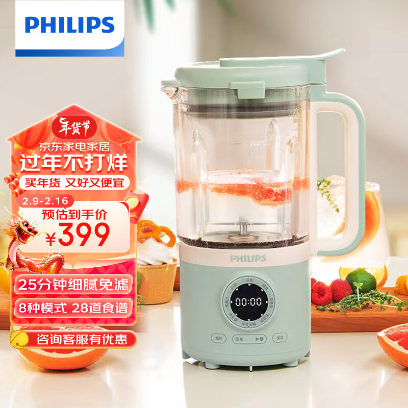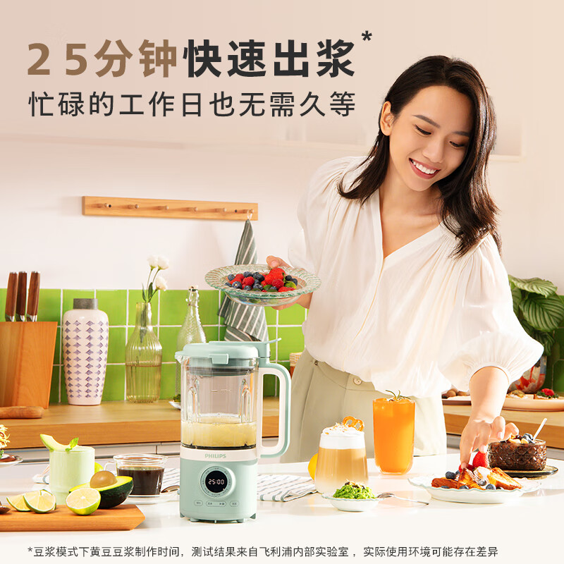 飞利浦破壁机破壁机非常好用,朋友推荐的,底盘是陶瓷的加热后不糊锅底,好清洗,可以预约早上起来刚好喝上豆浆。还送了研磨机。上午下单,下午收到就用上啦,打了菠菜汁,感觉比的老款声音真的小了,目前觉得还很不错。外观外形:图文相符,长得还挺好看的。产品功能:功能齐全,刚试过果汁和奶昔都不错。很适合平常自己动手用了次了,都用的五谷豆浆模式,打磨的很细腻,很不错,声音也不是太大