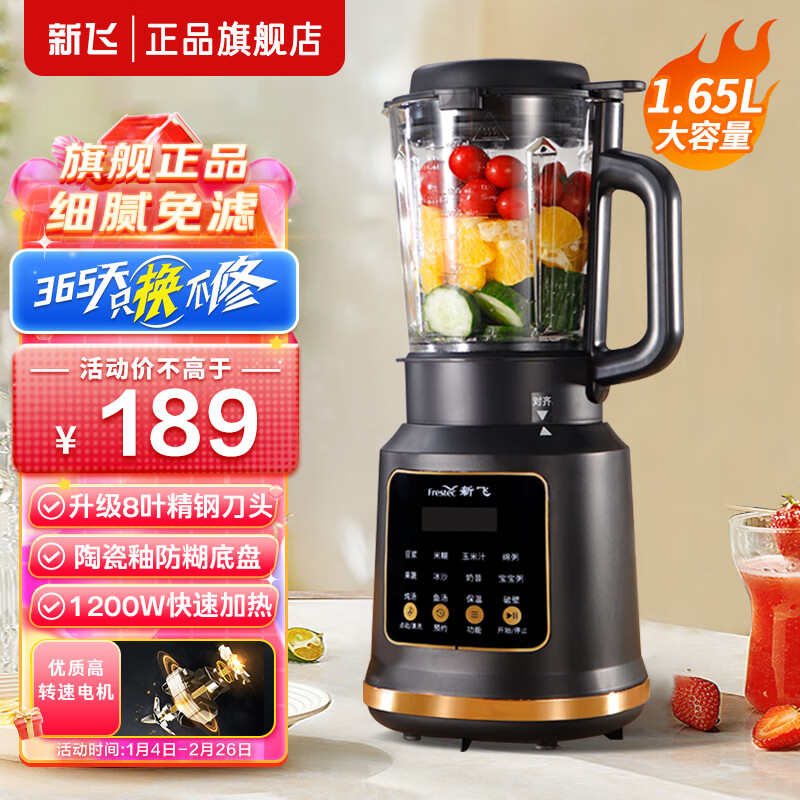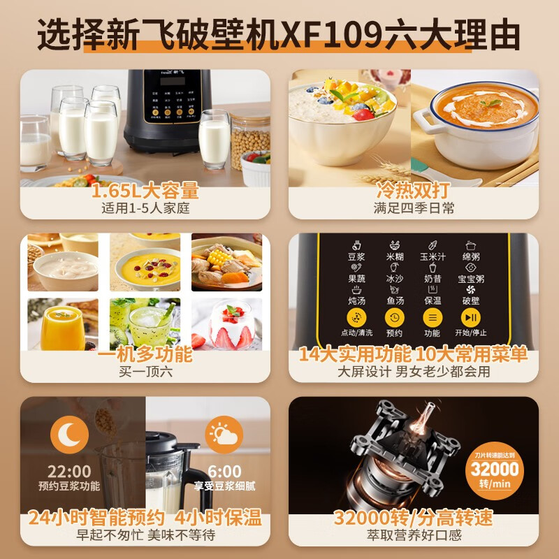 新飞破壁机破壁机大牌子值得信赖,外观设计漂亮,打磨豆浆口感不错,不用过滤省时省力,产品功能很多,商家很耐心的讲解功能外观外形:机器好看声音大小:动静小产品功能:功能很全,还有预约功能精挑细选了很久的产品,高大上,满意声音大小:不大,外观外形:时尚。打磨口感:细腻动力大小:很足产品功能:比较齐全愉快满意的一次购物,确认晚了不可以意思了产品质量也好,实惠值,点赞