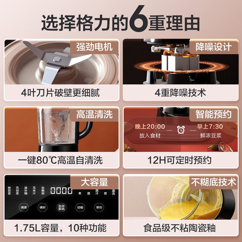 联创破壁机朋友真心推荐的一款破壁机,觉得特别好用,也终于喝上自己整得豆浆啦,特别香醇打出来的豆浆,好朋友如果需要可以入手吧的确是一款降噪破壁机,虽然有声音但比我之前用的声音小很多。口感细腻,顺滑很满意的一次购物,打得豆浆非常好,口感细腻,预约功能挺好,不用早起准备早餐了,别的功能还没实验,等试过后,再来追评声音小,用起来非常方便快捷!冲洗也方便,原来买的别的品牌声音太大,这款的这个价格真是太超值了!