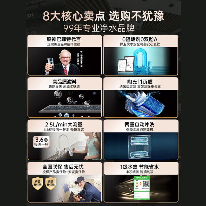 热心网友2024-03-12家中水质有点问题,买来,安装分钟搞定,试用效果不错。发货时间有点长。冲这家店赠品比其他家多去的,哈哈。净水器不错,发货很快,安装师傅也很快到家安装了。出水量很快。很喜欢。出水速度:很好,过滤水和自来水都出的快外形设计:好看物流速度:发货速度快其他特色:省事,比之前用过滤水壶方便多了外观小巧不占地方,出水速度快,过滤净化效果很好!安转师傅态度特别好!