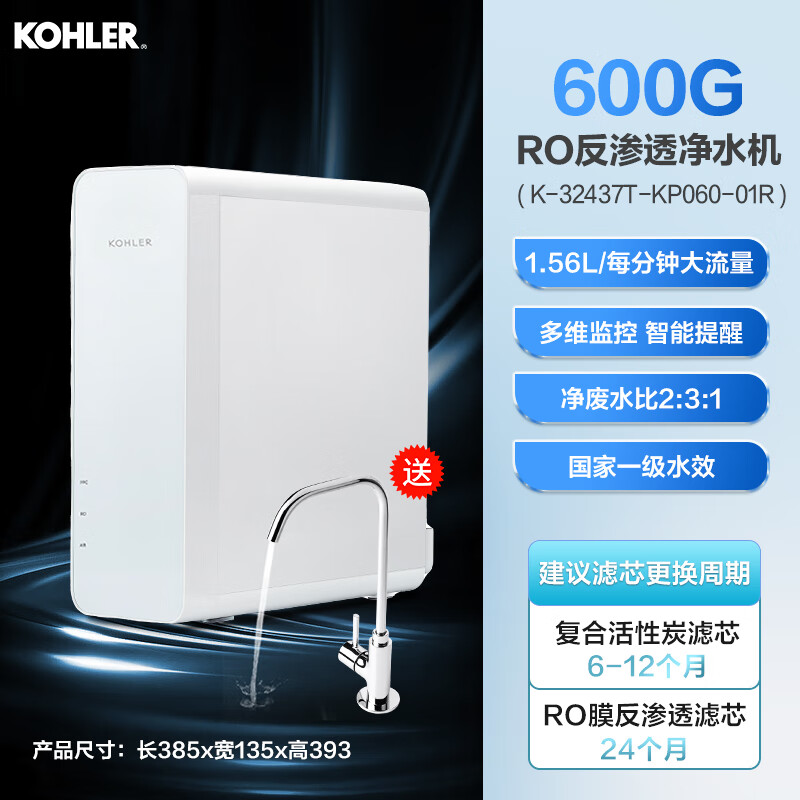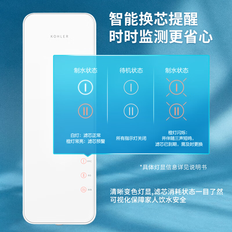 科勒净水器净水器真的很好。出水量非常大,用了半年多,滤芯到期报警了。赶紧在京东上下单拍了几个,送货速度很快,有质量保证,很好。新家刚刚装修好,果断选择了,老牌子值得信赖,物流很快,安装师傅效率也很高质量很好,安装方便,自己安装的,主要是跟自家的净水器是一个品牌,过滤作用还是可以的,前置过滤,也很有必要还在装修,终于到货啦,东西很完美,全新未开封,相信的性价比