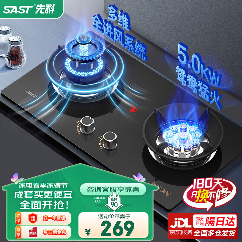 先科燃气灶双灶JZT-K27打开包装,安装好后,一眼看去,大气显档次,灶面非常好清洁,火势也够大,是非常畅快的一次购物。客服态度很好,本来不什么会用,客服耐心讲解后,现在很好用了,物美价廉值得购买的一次购物!家里出租房换新的燃气灶,自己安装好试用了一下,点火很灵敏,有熄火保护装置,火力十足,目前试用情况还是很好的很耐心的回答我的问题,这个价钱没想到拍到这么好的商品很喜欢,非常行的商品。质量好拆箱看材料厚度比较厚,做工扎实,点火测试,蓝色火焰,火力猛,很好。