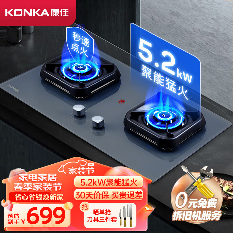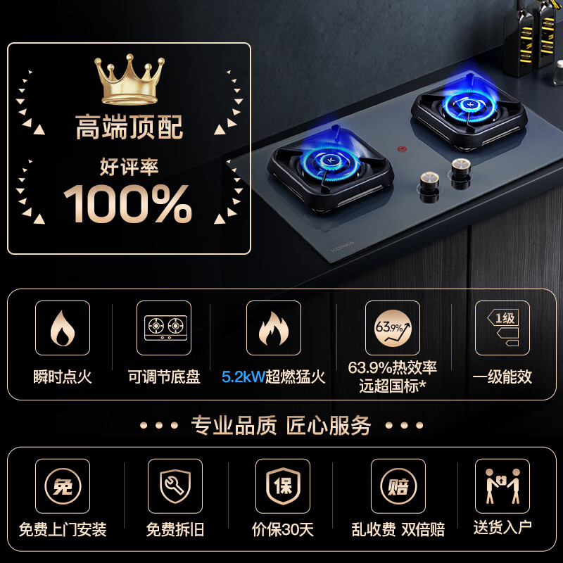 康佳JZT-B522X煤气灶挺好的,就是安装不太满意,燃气公司给我新换的管,他非得说我的管老化了,让换他的,我不换他还挺不高兴相信品牌,换了燃气灶,果然,火力更猛,大小调节也均匀,店家还很贴心的送了个支角忠爱粉,新家装修果断买了的全套家居,品质,颜值都是非常不错了,超级推荐!品质,颜值都是非常不错了,超级推荐!跟烟机、洗碗机一起买的,一直用的产品,虽然还没有安装使用,但相信的品质。煤气灶收到货了,自己安装简单包装完美无损,不懂的客服耐心指导,有问必答,完美地一次购物?