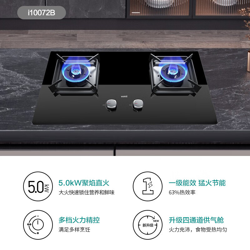 华帝i10072B这个品牌我已经买过几个了 ,自己用过感觉不错,所以现在帮朋友也买这个牌子,面板加厚,点火快火力大也够猛。产品收到了,很美观,很瓷实,用过了天然气燃烧很充分,火苗很旺,物超所值!值得购买?这个价位的燃气灶还是给了我意外的惊喜,特意用了段时间才来评价的,火力很大,还很贴心的配了放奶锅的架子物流很快,质感很好,很漂亮,很喜欢刚好做活动,价格便宜了很多,性价比超高,真的特别划算