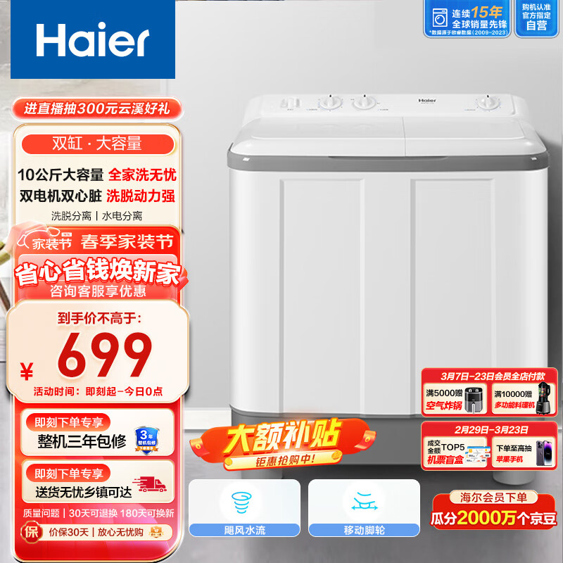 海尔XPB100-729S洗衣机真的是一款非常实用又可爱的小家电。有了它可以轻松地完成洗衣任务了,而且它的价格也非常实惠,性价比很高!很不错。颜值在线,美观,好用,还是节能的,很好,性价比也高,值得推荐,也是老品牌。确实可以。洗衣机不错的,性价比高,功能齐全,而且不重,已经洗过几次了,还不错,建议购买的,根据自己的需要买,我买的九升,很够用外形外观:小巧玲珑容量却不小,按着尺寸来的刚刚好,颜色非常高大尚,是我喜欢想要的颜色。推荐哦